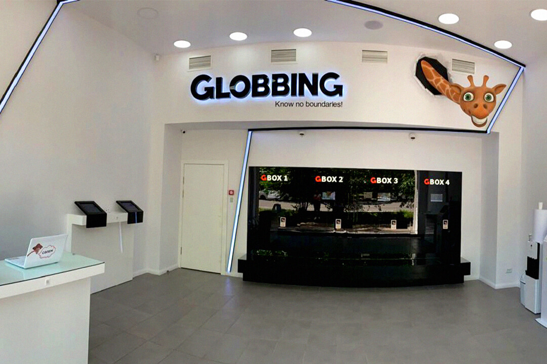 Локер Глоббинг находится в ТРЦ Mart Village. При входе с центрального главного входа, поверните направо, затем сразу налево, и пройдите до конца - до магазина Kulikov. От магазина Kulikov поверните направо и найдете локер.